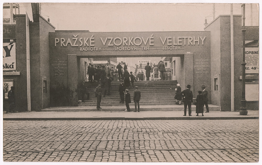 Entrance to the Prague Trade Fair grounds, where the assembly point was established.