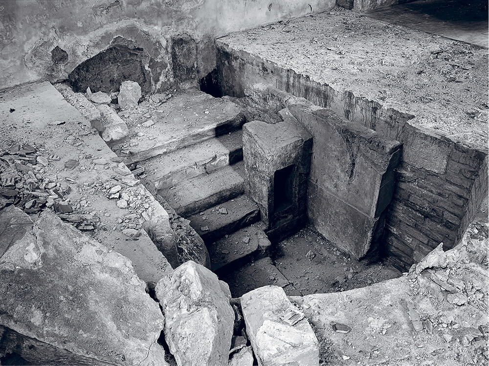 Pinkas Synagogue after demolition of the surrounding buildings and landscaping. This photo shows the early 17th-century annex of the synagogue and its facades, which had previously been concealed by the surrounding buildings. Karel Dvořák, ca. 1910.